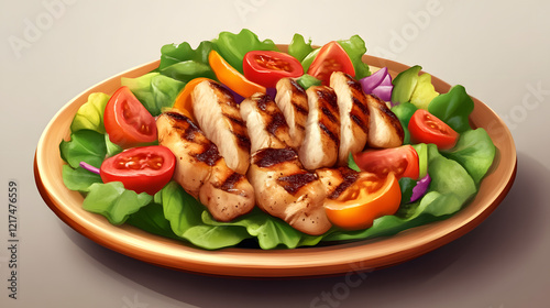 Gourmet Dinner Plate with Grilled Chicken and Fresh Salad Vegetables