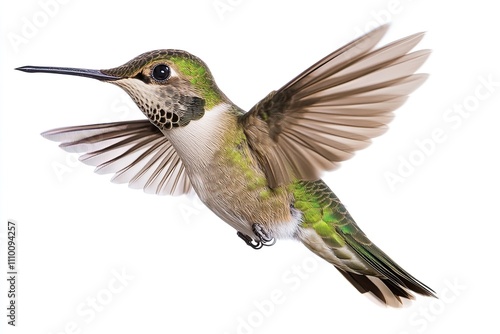 Graceful Flight: Stunning Full-Body Photograph of a Vibrant Hummingbird on White