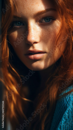 girl, woman, beauty, human skin, freckle, portrait, flowing, natural, redhead, youthful, skincare, elegance, radiant, closeup, confident
