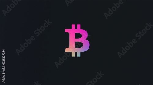 Gradient bitcoin symbol in pink and purple tones on a dark background, representing modern cryptocurrency and digital finance.
