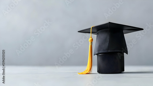 Graduation Cap And Tassel On Gray Background