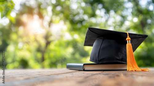 Graduation cap in focus with blurred background and empty space in the middle symbolizing academic achievement education and the of a new chapter
