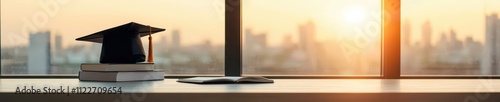 Graduation study goals at a sunlit window academic environment inspirational content for future success