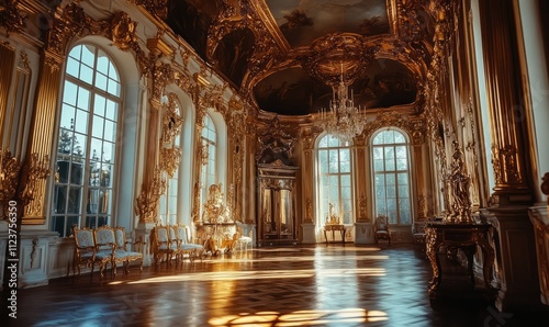 grand palace interior with gilded walls ornate ceilings and opulent furniture royal architecture
