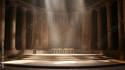 Grand Stage with Dramatic Lighting and Dust Particles in a Classical Theater - Perfect for Performance, Drama, and Historical-Themed Designs and Projects