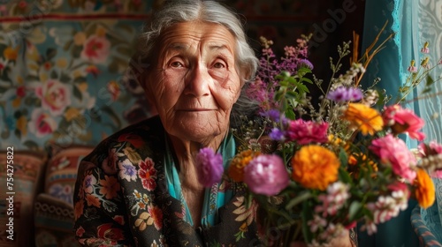 grandmother, person, birthday, children, mother, present, senior, happiness, bouquet, caucasian, female, gift, happy, portrait, woman, adult, flower, holiday, old, age, aged, anniversary, daughter, elderly, emotional, expression, generation, giving, granddaughter, greeting, grey, hugging, indoor, international, kiss, mature, mood, pension, pensioner, positive, retired, retirement, room, smile, together, trendy, wrinkle, ageing, aroma