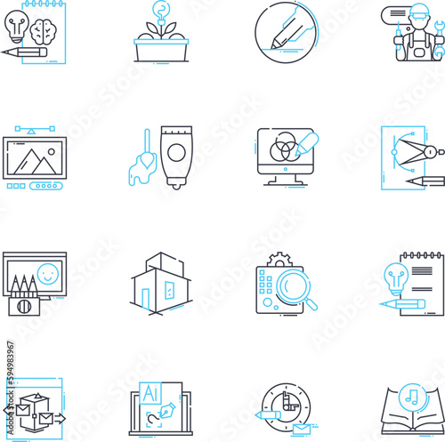 Graphic artist linear icons set. Creativity, Design, Illustration, Visual, Color, Typography, Adobe line vector and concept signs. Sketching,Logo,Digital outline illustrations