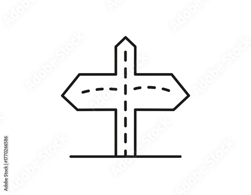 Graphic illustration of a directional sign, minimal, black lines on white