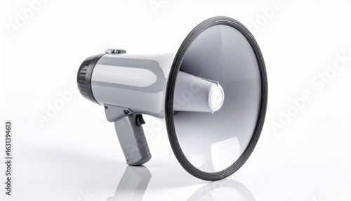 megaphone, grey, black, speaker, sound, audio, device, loud, volume, handle, plastic, cone, communication, alert, announcement, tool, equipment, isolated, product, white, background, minimal, clean, modern, reflective, surface, shadow, broadcast, amplify, voice, hand-held, tech, gear, emergency, public, speech, shout, noise, compact, sleek, bold