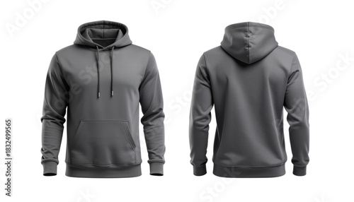 grey, hooded, sweatshirt, apparel, hood, pocket, front, back, view, white, transparent, clothing, casual attire, fashion, style, garment, top, wear, cotton, polyester, drawstring, zip, pullover, design, template, blank, simple, modern, plain, unisex, basic, front view, backview, white background, casual clothes, long sleeve, modern style