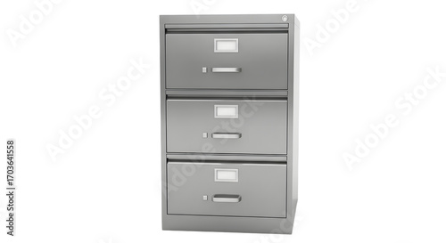 Gray Metal Filing Cabinet with Three Drawers in Minimalist Office Setting