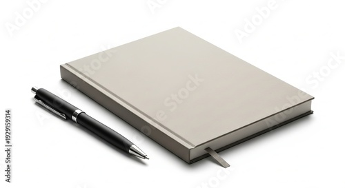notebook, pen, grey, black, stationery, writing, office, desk, paper, book, journal, tool, study, work, organisation, planning, education, communication, creativity, design, empty, blank, page, cover, silver, clip, metallic, simple, minimal, modern, contemporary, professional, neat, orderly, clean, white, background, isolated, still, life, object, supply, accessory, equipment, resource, material, item, product