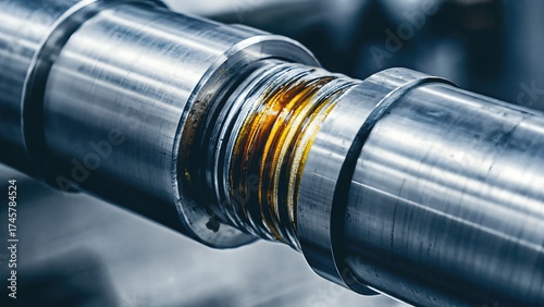 Greased Industrial Metal Shaft Close-Up. Precision Engineering Machinery With Lubricated Joints For Mechanical Performance