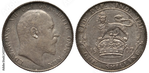 coin, money, currency, isolated, cash, silver, finance, metal, old, white, bank, business, ancient, dollar, antique, banking, great britain, british, shilling, 1907, king, lion, crown, value, digit, circulation, numismatic, collector, collection, coinage, mint, tender, pay, mintage, vintage, royals