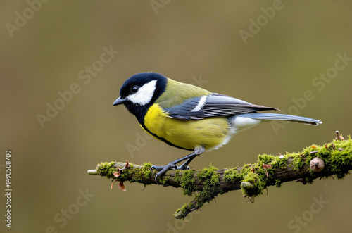 Great tit perched on a tree branch with a blurred background.