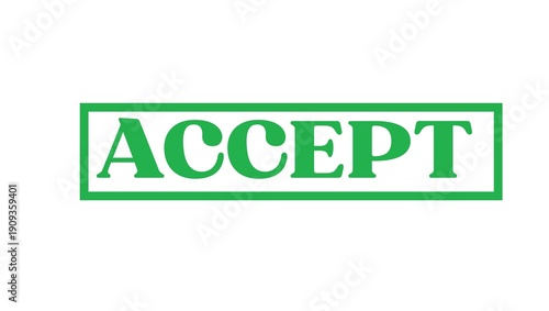 Green accept text icon with bold typography, symbolizing approval, confirmation, agreement, and successful action in digital interface design.