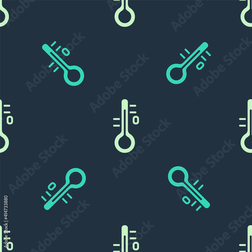 Green and beige Sauna thermometer icon isolated seamless pattern on blue background. Sauna and bath equipment. Vector.