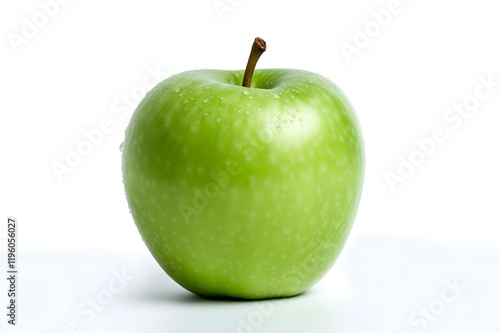Green apple with water drops on white background
