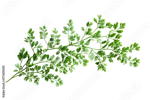 Green branch with leaves isolated on transparent background. Branch of green moringa leaves tropical herbs isolated on white background.
