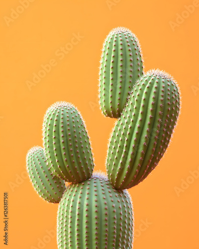 cactus, green, orange, background, pad, spine, rib, texture, closeup, detail, plant, succulent, desert, nature, botany, photo, studio, still life, sharp, sharpened, vibrant, colours, bright, vertical, image, art, graphic, design, minimalist, simple, clean, modern, aesthetic, tropical, arid, flora, bloom, prickle