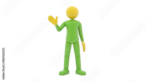 cartoon, character, green, yellow, waving, standing, isolated, figure, animation, three-dimensional, friendly, approachable, greeting, communication, style, colours, pattern, visual, creative, stock
