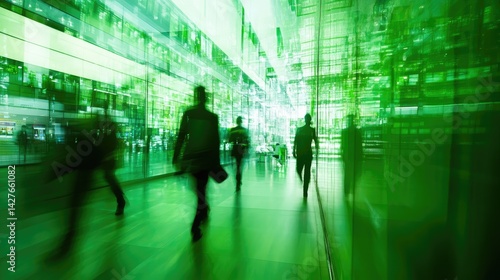 businessperson, city life, urban scene, green light, shopping centre, commuter, walking, silhouette, abstract, contemporary, lifestyle, background, texture, design, green, energy, movement, dynamic, rush hour, indoor, hallway, architecture, interior design, abstract background, motion blur, green background