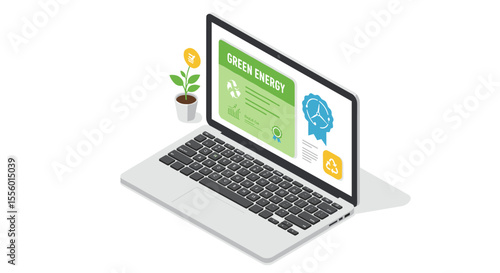 energy, green, eco, laptop, certificate, sustainability, renewable, isometric, concept, illustration, ecology, technology, plant, digital, reusing, environment, award, nature, graphic, clean, power, design, vector, three-dimensional, badge, modern, online, symbol, growth, innovation