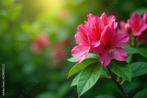 Green foliage and blooming stems of Rhododendron Ledebour, branch, ledbour, stem