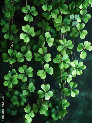 Green four-leaf clover plants with hanging stems, used for good luck and greenery decor.