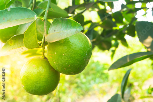 Green limes on a tree. Lime is a hybrid citrus fruit.