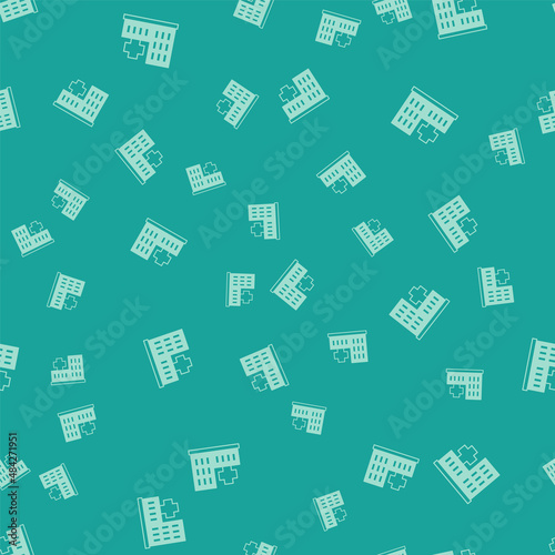 Green Medical hospital building with cross icon isolated seamless pattern on green background. Medical center. Health care. Vector