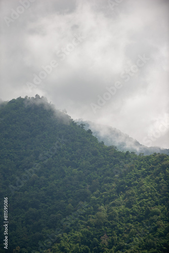 Green mountains and mist after rain.