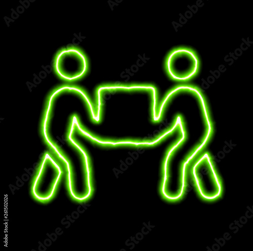 carry, men at work, green, heavy, symbol, person, icon, neon, move, box, delivery, people, help, loader, shipping, job, male, man, web, illustration, concept, signs, alpha, background, light, glow, bright, night, element, glowing, shape, isolated, lamp, black, style, electric, graphic, decoration, banner, retro, illuminated, colours, line, energy, shine, modern, electricity