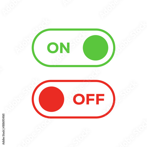 Green 'on' and red 'off' modern user interface toggle switch buttons