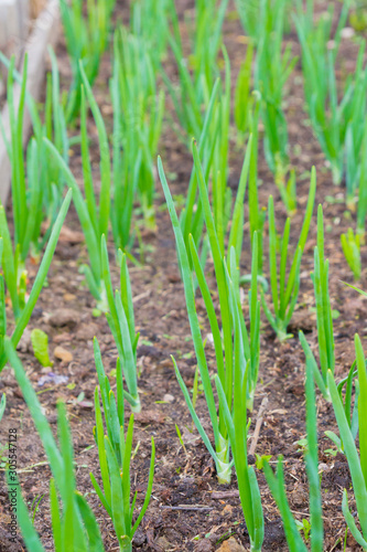 Green onions ripened in the garden beds in early summer