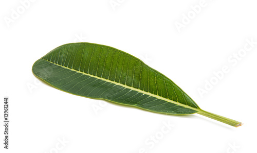 Green plumeria leaf isolated