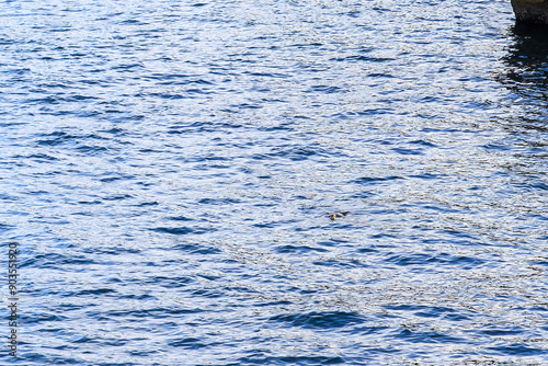 中木港内で 息継ぎをするためにゆったり泳ぐ美しく大きなアオウミガメ(ウミガメ科)。 英名、学名:green sea turtle (Chelonia mydas, family Turtles) 静岡県伊豆半島賀茂郡南伊豆町中木ヒリゾ浜-2024年