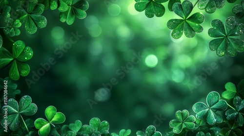 shamrock, clover, leaf, green, background, nature, frame, border, irish, st, patrick, spring, holiday, celebration, texture, pattern, design, image, photo, picture, illustration, graphic, vibrant, bright, lush, fresh, shiny, sparkling, water, drop, dew, bokeh, abstract, beauty, flora, plant, foliage, detail, colours, emerald, jade, forest, timberland