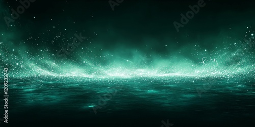 Green teal glowing gradient on dark background, retro grainy texture banner, Generative AI