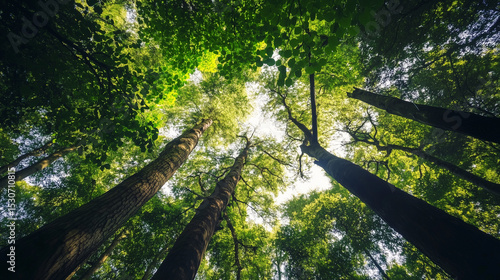 Green trees in the forest in summer
