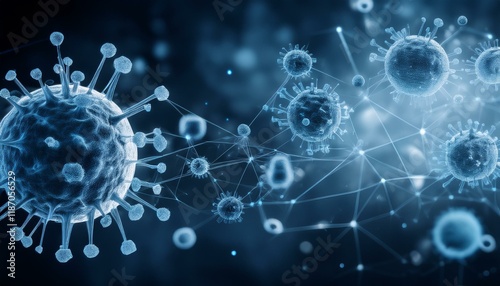 Green virus particles floating in the air and connecting to each other, symbolizing the spread of an infectious disease