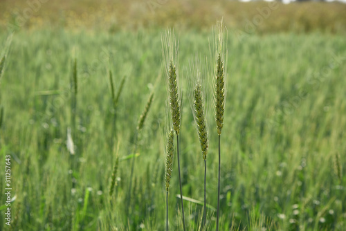 Green wheat at organic farm field