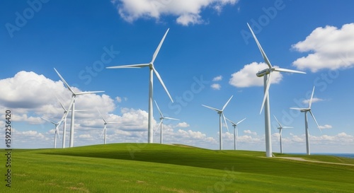 wind turbine, renewable energy, green energy, blue skies, electricity, power generation, nature, environment, sustainability, clean energy, landscape, outdoors, field, technology, alternative energy, environmentally friendly, energy, future, innovation, modern, natural, park, plant, scenic, turbine, sky, wind, farm, generator, ecology, industrial, industry, meadow, aerial, alternative, cloud, conservation, dawn, engineering, environmental, evening, farmland, global, horizon, installation, light, machine