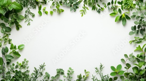 Greenery frame with pure white background for natural design concepts studio photography minimalist style