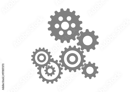 icon, symbol, cog, cogwheel, cogwheel, connect, connection, cooperation, engineering, group, industrial, industry, interlock, machine, mechanical, mechanism, metal, metallic, movement, power, precision, steel, system, teamwork, technical, technology, together, turning, wheel, work, white background, circle, round, gear, grey, grey