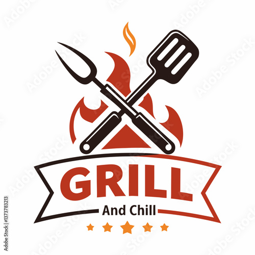 Grill And Chill: Barbecue Spatula and Fork Logo Design