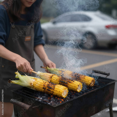 Grilled corn on charcoal street food