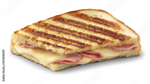 Grilled ham and cheese sandwich close up on white background studio shot food photography lunch dinner snack
