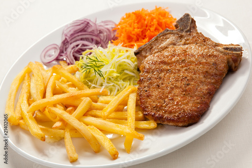 meat, food, chop, pork meat, fries, steak, dinner, chips, meal, fried, vegetable, salad, grilled, french, bar-b-q, roasted, roast, plate, chop, lunch, onion, eating, epicure, delicious, grill, tasty, steak, cooked, slice, dining, bar-b-q, eat, sirloin, fillet, filet, background, diet, bar-b-q, dish, fat, appetiser, vegetable, horizontal, schnitzel, cutlet, veal, knife, fork