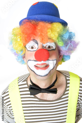 clown, carnival, carnival, man, smile, fun, happy, fun, merry, smiling, european, european, white, fool, costume, wig, nose, red, make-up, hat, fly, laugh, high spirits, witty, animation, animate, birthday, grin, head, shoulder, circus, occupation, amazing, surprised